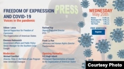 El evento se denomina Voces en la pandemia: Covid-19 y Libertad de Expresión en las Américas, y tiene como objetivo abordar las limitaciones y restricciones a la libertad de expresión en el contexto de la emergencia COVID-19.